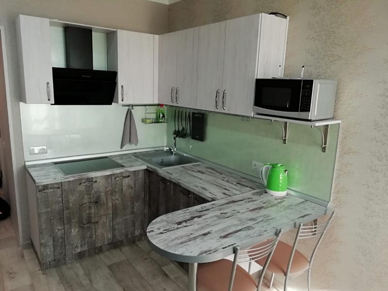 В квартире сделан качественный евроремонт. Пространство обустроено функционально, включая удобную зону отдыха и компактную кухню. Совмещенный санузел оборудован всем необходимым.