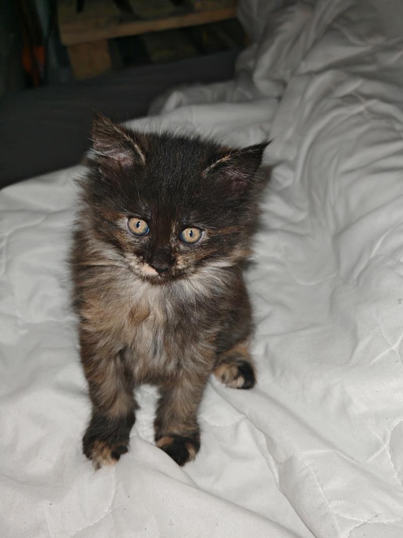 Отдаю кошку взрослую мейкун Оззи. Ей 2 года, 2 раза окатилась. И котёнка из последнего приплода. Софа ему 1,5 месяца, Самостоятельно ест. К лотку только приучается.